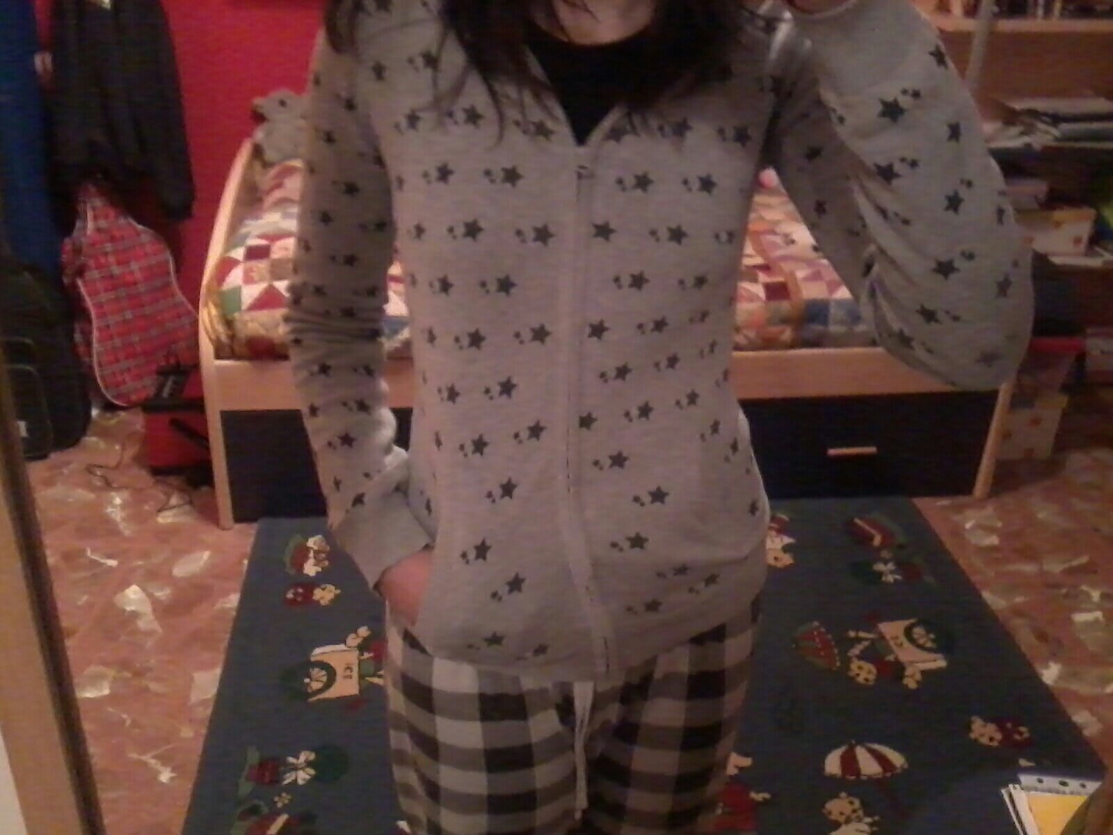 Me apetecía subir esta foto de mí con el pijama y una chaqueta gris con estrellas. Ya la subí a twitter (@ElleIdiot) y escribí menos de 140 letras sobre ella, pero no sé, me apetece contar más sobre ella porque es muy preciada para mí.